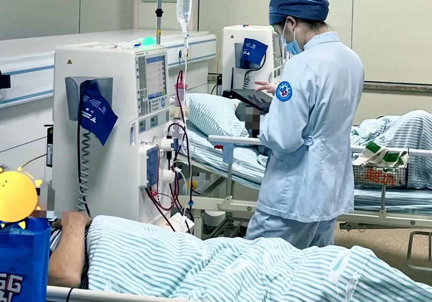 6月5日,老年科一位81歲的章爺爺(化名),最近出現(xiàn)尿少、高度水腫、多漿膜腔積液、嚴(yán)重低蛋白血癥等癥狀,由血液透析中心蘇惠副主任醫(yī)師趕往老年科會(huì)診。經(jīng)過詳細(xì)評(píng)估,章爺爺被確診為腎病綜合癥,有腎臟替代治療指征。當(dāng)腎臟功能嚴(yán)重受損,身體無(wú)法正常排出毒素和多余水分,健康與生活質(zhì)量便會(huì)急劇下降。當(dāng)天,血液透析中心團(tuán)隊(duì)迅速完成傳染病篩查、排除禁忌,為章爺爺進(jìn)行股靜脈留置導(dǎo)管術(shù)。手術(shù)中,蘇主任以右側(cè)股靜脈脈內(nèi)側(cè)0.5cm、腹股溝韌帶下方2cm處為穿刺點(diǎn),于穿刺點(diǎn)向正中線上的肚臍與皮膚順血2025-06-14