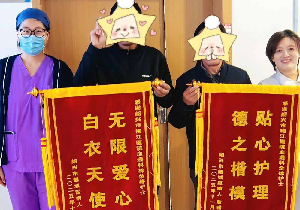 近日紹興袍江醫(yī)院血液透析室出現(xiàn)了這樣溫馨感人的一幕,長期在接受透析治療的患者邵先生(化名)滿懷感激之情,將一面繡有“醫(yī)護熱忱院風(fēng)高尚”字樣的鮮紅錦旗,鄭重地送到了血透室醫(yī)護人員手中。這面沉甸甸的錦旗,不僅承載著患者及家屬深深的謝意,更是對透析室全體醫(yī)護人員精湛醫(yī)術(shù)、優(yōu)質(zhì)服務(wù)和無私奉獻精神的高度認(rèn)可與贊譽。邵先生是一位需要長期依賴血液透析維持生命的尿毒癥患者。在漫長的治療過程中,他的身心深受疾病的煎熬。然而,在紹興袍江醫(yī)院透析室,他不僅接受了專業(yè)的治療,更感受到家一般的溫暖和親2025-10-07